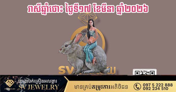 ថ្ងៃនេះលោកអ្នកមាន “ផ្កាយសំណាង” ជួយគាំពារ ធ្វើឱ្យចិត្តគំនិតភ្លឺស្វាង និងមានសិរីសួស្តីខ្លាំង។ រាល់ការភ័យព្រួយ ឬឧបសគ្គដែលធ្លាប់មាន នឹងត្រូវរលាយបាត់ទៅវិញ ហើយជំនួសមកវិញនូវដំណឹងល្អ និងឱកាសមាសដែលនឹងមកដល់ដៃក្នុងពេលឆាប់ៗ។