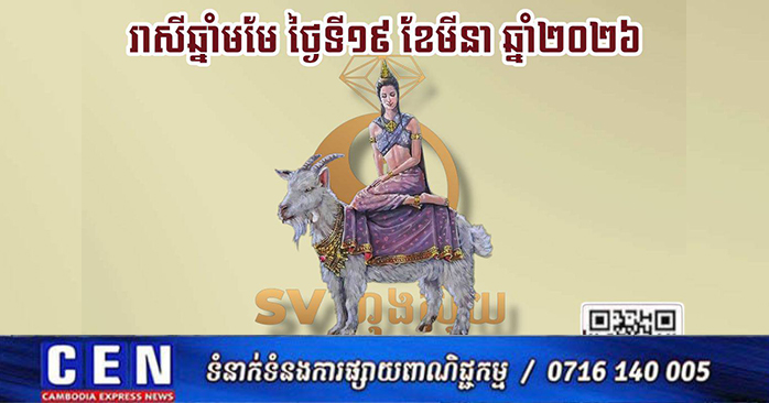 ក្នុងថ្ងៃនេះ រាសីរបស់លោកអ្នកឡើង ខ្ពស់ត្រដែត។ នេះជាថ្ងៃដែលលោកអ្នកមានសិរីសួស្តី និងមានជោគលាភហូរចូលមកពីគ្រប់ទិសទី។ រាល់ការលំបាក ឬភាពស្មុគស្មាញដែលធ្លាប់មានពីមុនមក នឹងត្រូវបានដោះស្រាយ ហើយជំនួសមកវិញនូវភាពរីករាយ និងក្តីសង្ឃឹមថ្មីៗ។