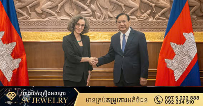 ភ្នំពេញ ៖ នៅព្រឹកថ្ងៃទី១៩ ខែមីនា ឆ្នាំ២០២៦ នៅទីស្តីការក្រសួង ឯកឧត្តមឧបនាយករដ្ឋមន្ត្រី ប្រាក់ សុខុន រដ្ឋមន្ត្រីការបរទេស និងសហប្រតិបត្តិការអន្តរជាតិ បានទទួលជំនួបសម្តែងការគួរសមរបស់ លោកជំទាវ Susan Kleebank អនុរដ្ឋមន្រ្តីការបរទេសទទួលបន្ទុកអាស៊ី និងប៉ាស៊ីហ្វិកនៃក្រសួងការបរទេសប្រេស៊ីល ក្នុងឱកាសដែលលោកជំទាវអញ្ជើញមកបំពេញទស្សនកិច្ចការងារ ដើម្បីធ្វើជាសហប្រធាននៃកិច្ចប្រជុំពិគ្រោះយោបល់ទ្វេភាគីលើកទី២ រវាងកម្ពុជា-ប្រេស៊ីល នៅរាជធានីភ្នំពេញ។