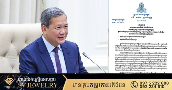 ភ្នំពេញ ៖ សារលិខិតសម្តេចមហាបវរធិបតី ហ៊ុន ម៉ាណែត នាយករដ្ឋមន្ត្រី នៃព្រះរាជាណាចក្រកម្ពុជា