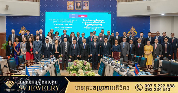 នៅរសៀលថ្ងៃទី២៦ ខែមីនា ឆ្នាំ២០២៦ នៅទីស្តីការក្រសួង ឯកឧត្តម កាន់ ផារិទ្ធ រដ្ឋលេខាធិការនៃក្រសួងការបរទេស និងសហប្រតិបត្តិការអន្តរជាតិ និង លោកស្រី Paola Pampaloni នាយិការងនៃមន្ទីរការបរទេស សហភាពអឺរ៉ុប បានធ្វើជាសហប្រធានដឹកនាំកិច្ចប្រជុំពេញអង្គគណៈកម្មាធិការចម្រុះកម្ពុជា-សហភាពអឺរ៉ុបលើកទី១៣ ដែលត្រូវធ្វើឡើងជារៀងរាល់២ឆ្នាំម្តង។ កិច្ចប្រជុំនេះមានការអញ្ជើញចូលរួមពីតំណាងក្រសួង-ស្ថាប័នពាក់ព័ន្ធកម្ពុជាសំខាន់ៗ និងតំណាងរបស់ភាគី EU ដែលមកពីអគ្គនាយកដ្ឋានពាក់ព័ន្ធរបស់គណៈកម្មការអឺរ៉ុប និងពីស្ថានទូតនៃប្រទេសសមាជិក EU។