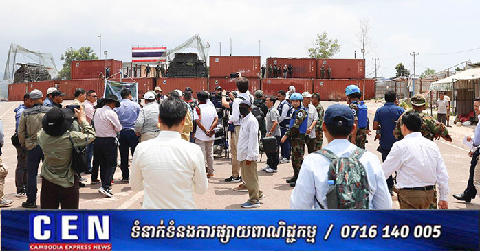 នៅថ្ងៃទី២៧ ខែមីនា ឆ្នាំ២០២៦ ឯកឧត្តមឧបនាយករដ្ឋមន្ត្រី ប្រាក់ សុខុន រដ្ឋមន្ត្រីនៃក្រសួងការបរទេស និងសហប្រតិបត្តិការអន្តរជាតិ បានដឹកនាំអង្គទូត និងតំណាងទីភ្នាក់ងារអង្គការសហប្រជាជាតិ និងអង្គការអន្តរជាតិប្រចាំកម្ពុជា ចុះពិនិត្យទីតាំង នៅឃុំថ្មដា ស្រុកវាលវែង ខេត្តពោធិ៍សាត់ នៃប្រទេសកម្ពុជា ដែលកងទ័ពថៃបានកាន់កាប់ដោយខុសច្បាប់ ហើយបន្តដាក់ពង្រាយទូកុងតឺន័រ និងបន្លាលួស។