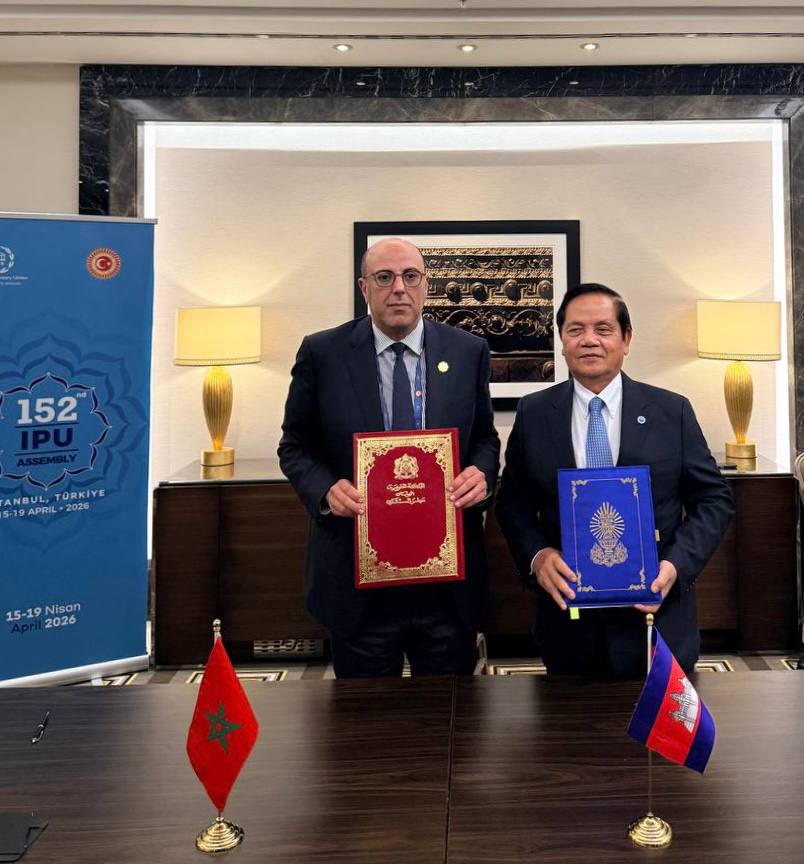 ទីក្រុងអ៊ីស្តង់ប៊ុល ៖ ក្នុងស្មារតីពង្រឹងកិច្ចសហប្រតិបត្តិការអន្តរសភាឱ្យកាន់តែស៊ីជម្រៅ នៅថ្ងៃទី១៦ ខែមេសា ឆ្នាំ២០២៦ម្សិលមិញនេះ គណៈប្រតិភូជាន់ខ្ពស់សភាកម្ពុជា ដឹកនាំដោយ ឯកឧត្តម អ៊ុច បូររិទ្ធ អនុប្រធានទី១ នៃព្រឹទ្ធសភា បានអញ្ជើញចូលរួមក្នុងជំនួបទ្វេភាគី និងពិធីចុះអនុស្សរណៈនៃការយោគយល់ ជាមួយសភាម៉ារ៉ុក ក្នុងឱកាសនៃមហាសន្និបាតលើកទី១៥២ នៃសហភាពអន្តរសភា (IPU) នៅទីក្រុងអ៊ីស្តង់ប៊ុល ប្រទេសតួកគីយ៉េ។