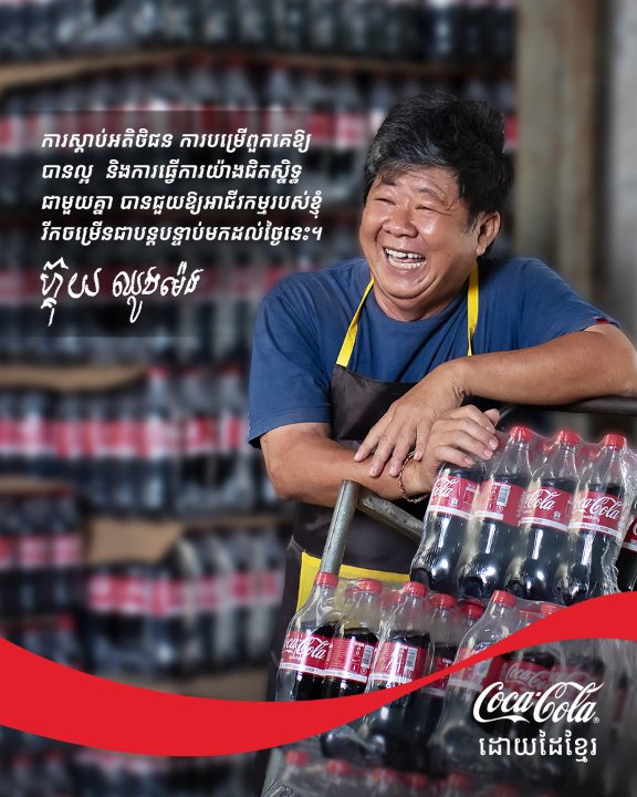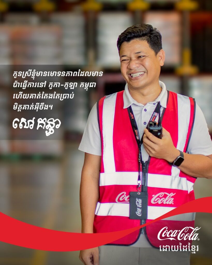 មុននឹងគ្រប់ដបឬកំប៉ុងនៃភេសជ្ជៈកូកា-កូឡានីមួយៗ បានដឹកទៅដល់សហគមន៍នានាទូទាំងប្រទេសកម្ពុជា គឺមានបុគ្គលិក របស់យើង ដែលការលះបង់របស់ពួកគាត់ជួយឱ្យអាជីវកម្មដំណើរការឆ្ពោះទៅមុខជានិច្ច។