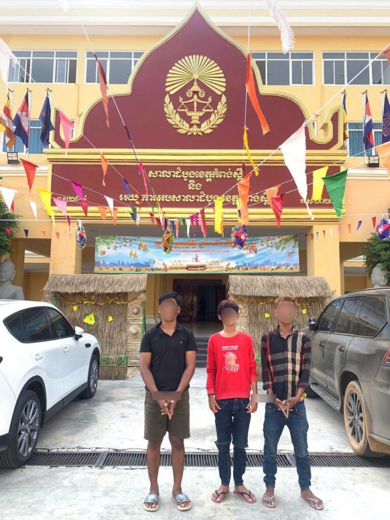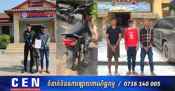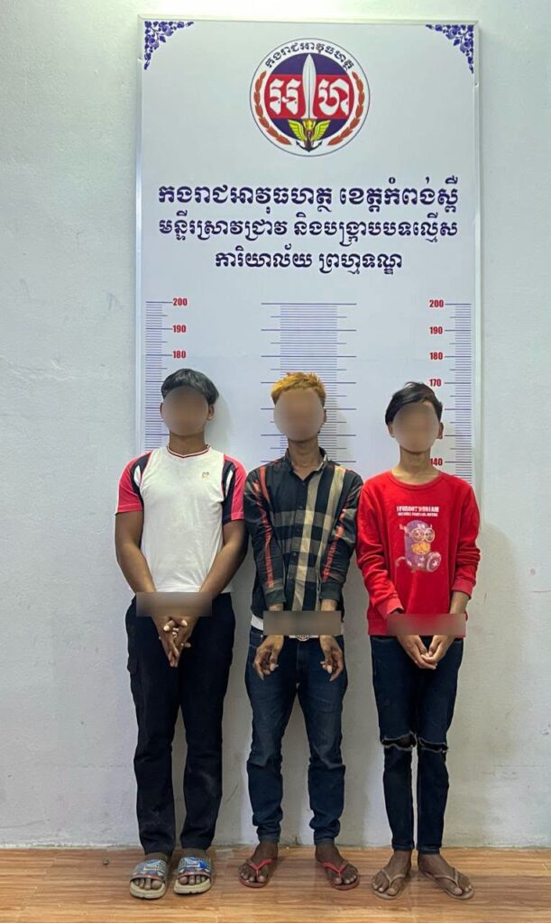 កំពង់ស្ពឺ៖ដោយអនុវត្តតាមបទបញ្ជាយ៉ាងម៉ឺងម៉ាត់របស់លោកឧត្តមសេនីយ៍ត្រី ម៉េង ស្រ៊ុន មេបញ្ជាការ កងរាជអាវុធហត្ថខេត្តកំពង់ស្ពឺ ព្រមទាំងមានការសម្របសម្រួលនីតិវិធីពី ឯកឧត្ដមព្រះរាជអាជ្ញា អមសាលាដំបូងខេត្តកំពង់ស្ពឺ កម្លាំងជំនាញកងរាជអាវុធហត្ថខេត្តកំពង់ស្ពឺ បានធ្វើការស្រាវជ្រាវ កំណត់មុខសញ្ញា និងឈានដល់ការឃាត់ខ្លួនជនសង្ស័យបានជាបន្តបន្ទាប់ចំនួន០៣នាក់ ពាក់ព័ន្ធករណីរំលោភលើទំនុកចិត្ត ធ្វើអោយខូចខាតដោយចេតនា និងទទួលផលចោរកម្ម ក្នុងភូមិសាស្ត្រក្រុងច្បារមន ខេត្តកំពង់ស្ពឺ។
