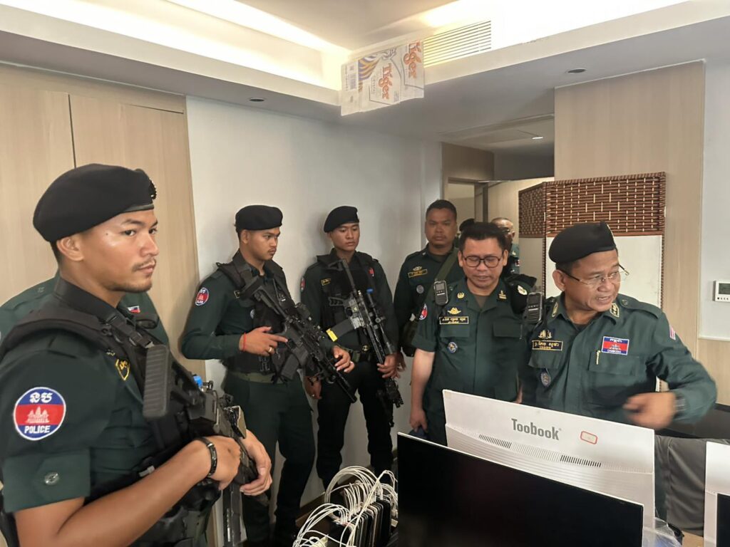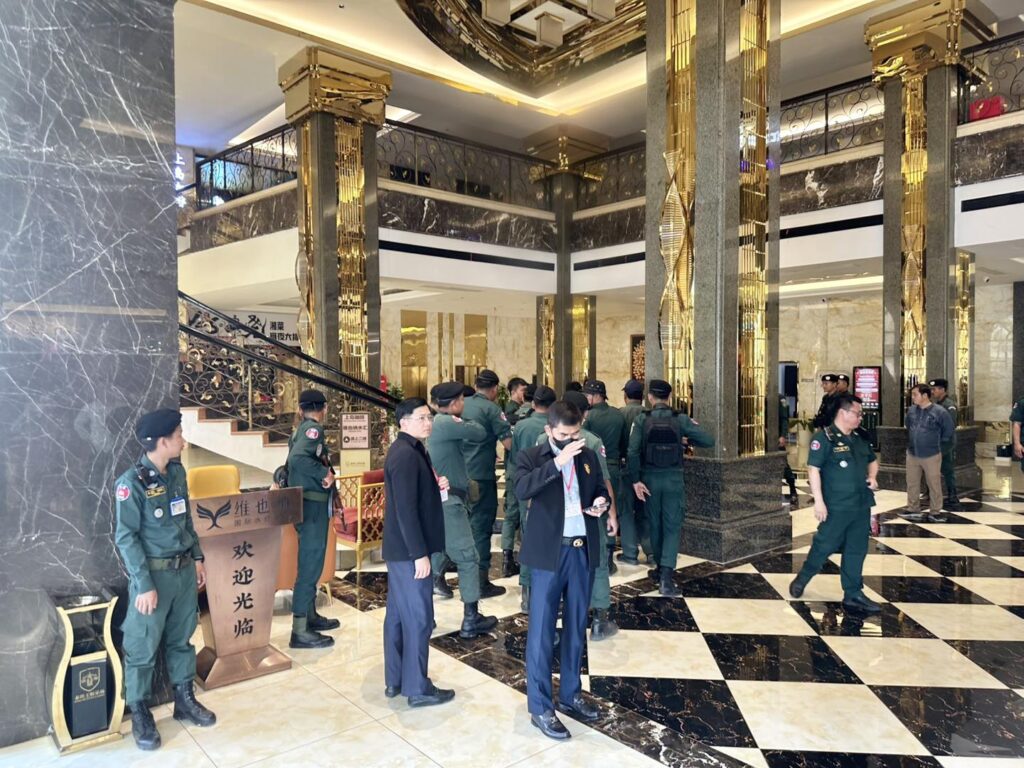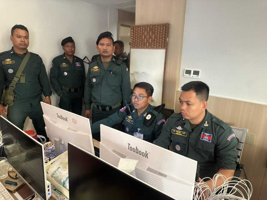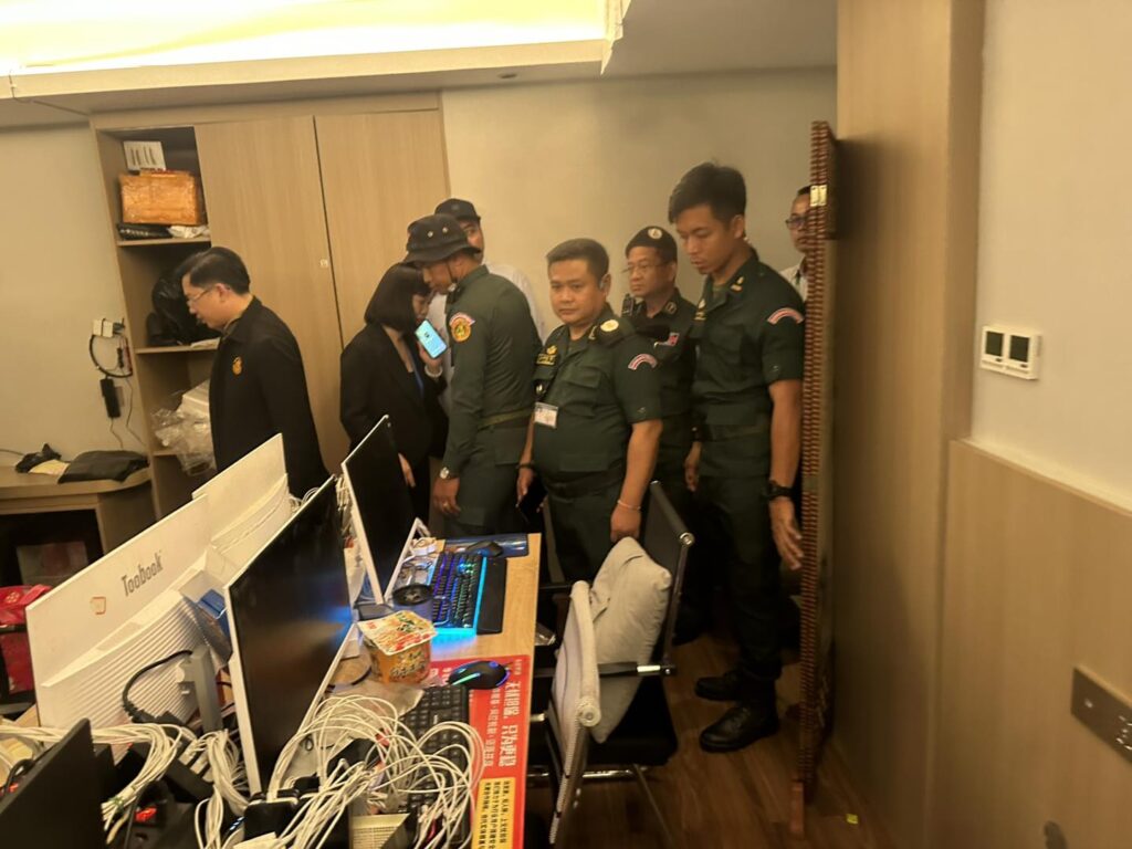 កងកម្លាំងនគរបាលខេត្ត ចុះត្រួតពិនិត្យទីតាំងសង្ស័យលួចលាក់ប្រព្រឹត្តបទល្មើសឆបោកតាមប្រព័ន្ធបច្ចេកវិទ្យា (Online Scams) នៅកាស៊ីណូ និងសណ្ឋាគារ ថាយថិន​ ឃីង ក្រុងបាវិត