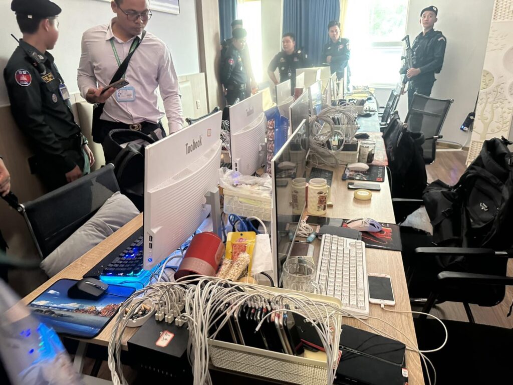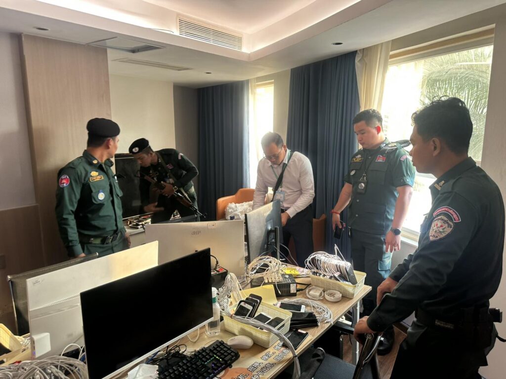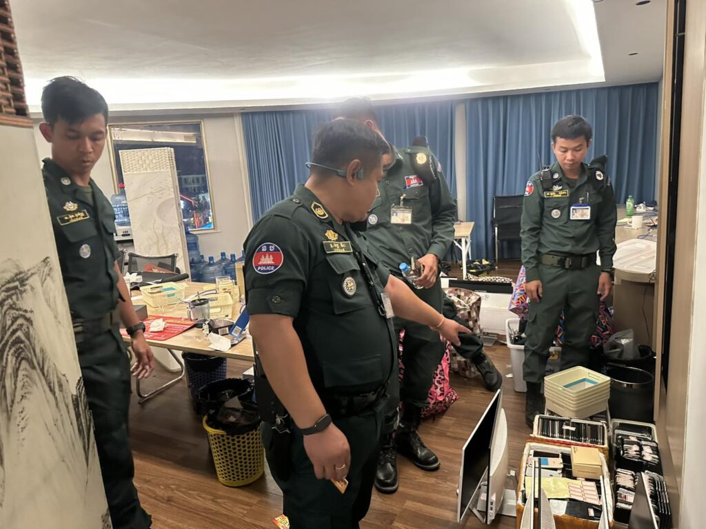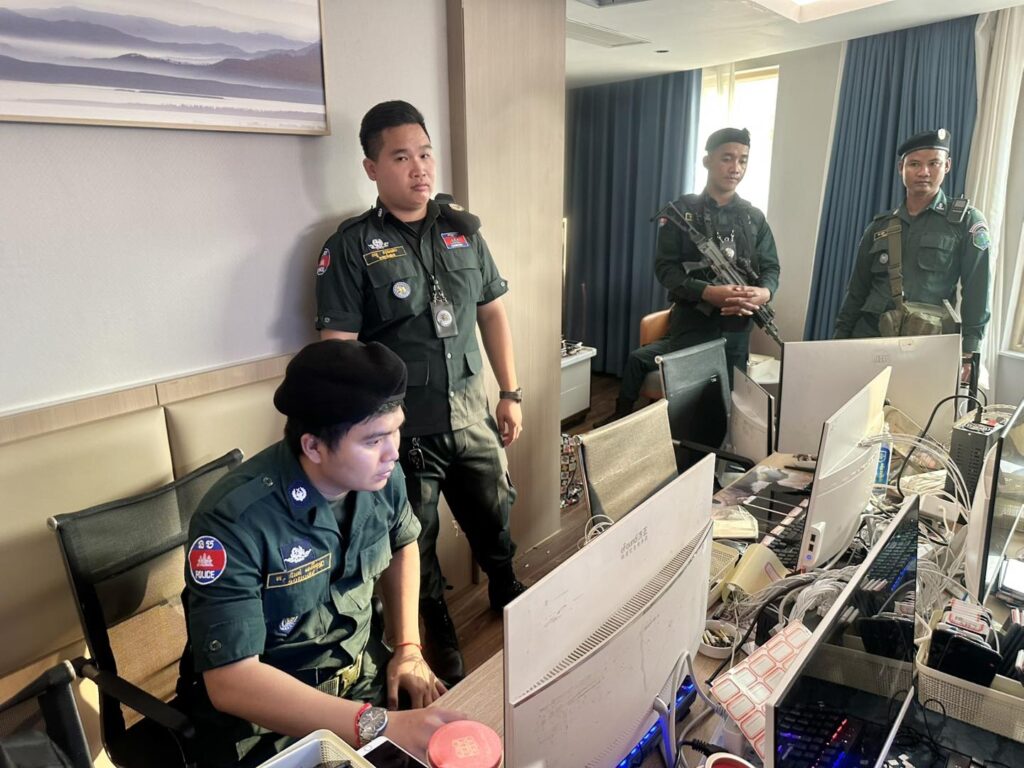 កងកម្លាំងនគរបាលខេត្ត ចុះត្រួតពិនិត្យទីតាំងសង្ស័យលួចលាក់ប្រព្រឹត្តបទល្មើសឆបោកតាមប្រព័ន្ធបច្ចេកវិទ្យា (Online Scams) នៅកាស៊ីណូ និងសណ្ឋាគារ ថាយថិន​ ឃីង ក្រុងបាវិត